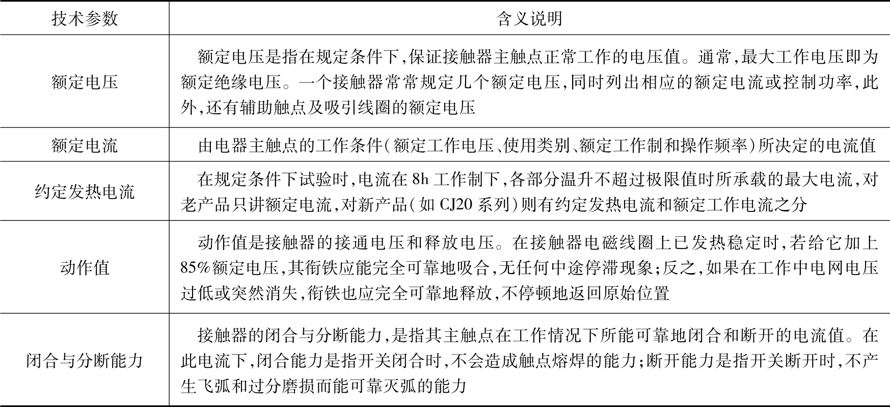 4)接触器的额定通断能力应大于通断时电路中的实际电流值;耐受过载电流能力应大于电路中最大工作过载电流值。