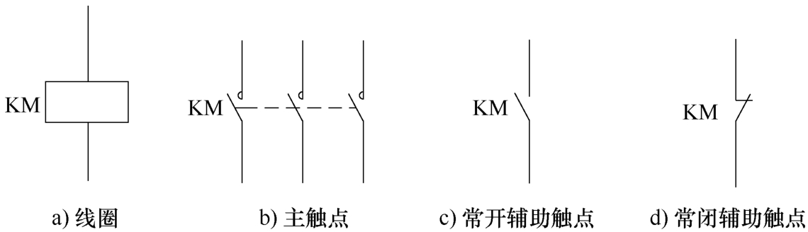 电磁系统由电磁线圈、铁心和衔铁组成,其功能是操作触点的闭合和断开。触点系统包括主触点和辅助触点。主触点用在通断电流较大的主电路中,一般由3对动合触点组成,体积较大。辅助触点用以通断小电流的控制电路,体积较小,它有动合、动断触点之分。动合触点(又称常开触点)是指线圈未通电时,其动、静触头是处于断开状态的;当线圈通电后就闭合。动断触点(又称常闭触点)是指在线圈未通电时,其动、静触头是处于闭合状态的,当线圈通电后,则断开。线圈通电时,常闭触点先断开、常开触点后闭合;线圈断电时,常开触点先复位(断开)、常闭触点后复位(闭合),其中间存在一个很短的时间间隔。分析电路时,应注意这个时间间隔。
