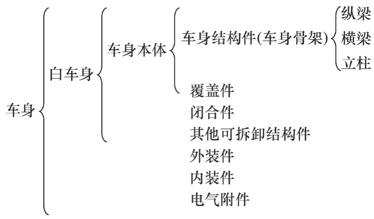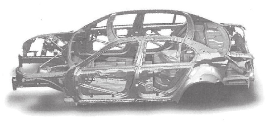 图2.8 乘用车承载式车身结构与车身骨架的关系