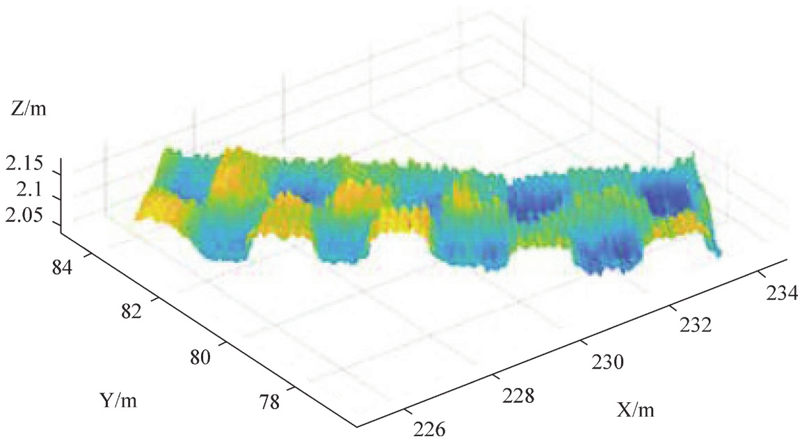 曲线网格表示一个区域附近任意道路中心线周围的路面数据。路面平铺成一个弯曲的网格,纵向切口与道路中心线平行,横向切口与道路中心线正交。对于每一个方格,我们可以指定一个道路数据值给一个图块。路面数据通常表示道路高程,但也可用于表示摩擦系数等。如图4-2所示的坐标系中,X、Y、Z可分别表示道路的水平几何和高程。