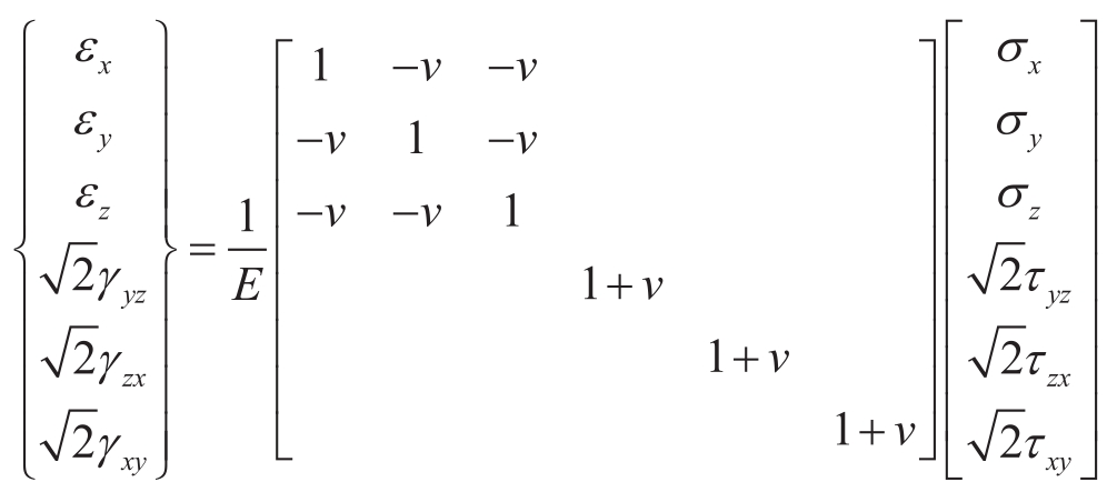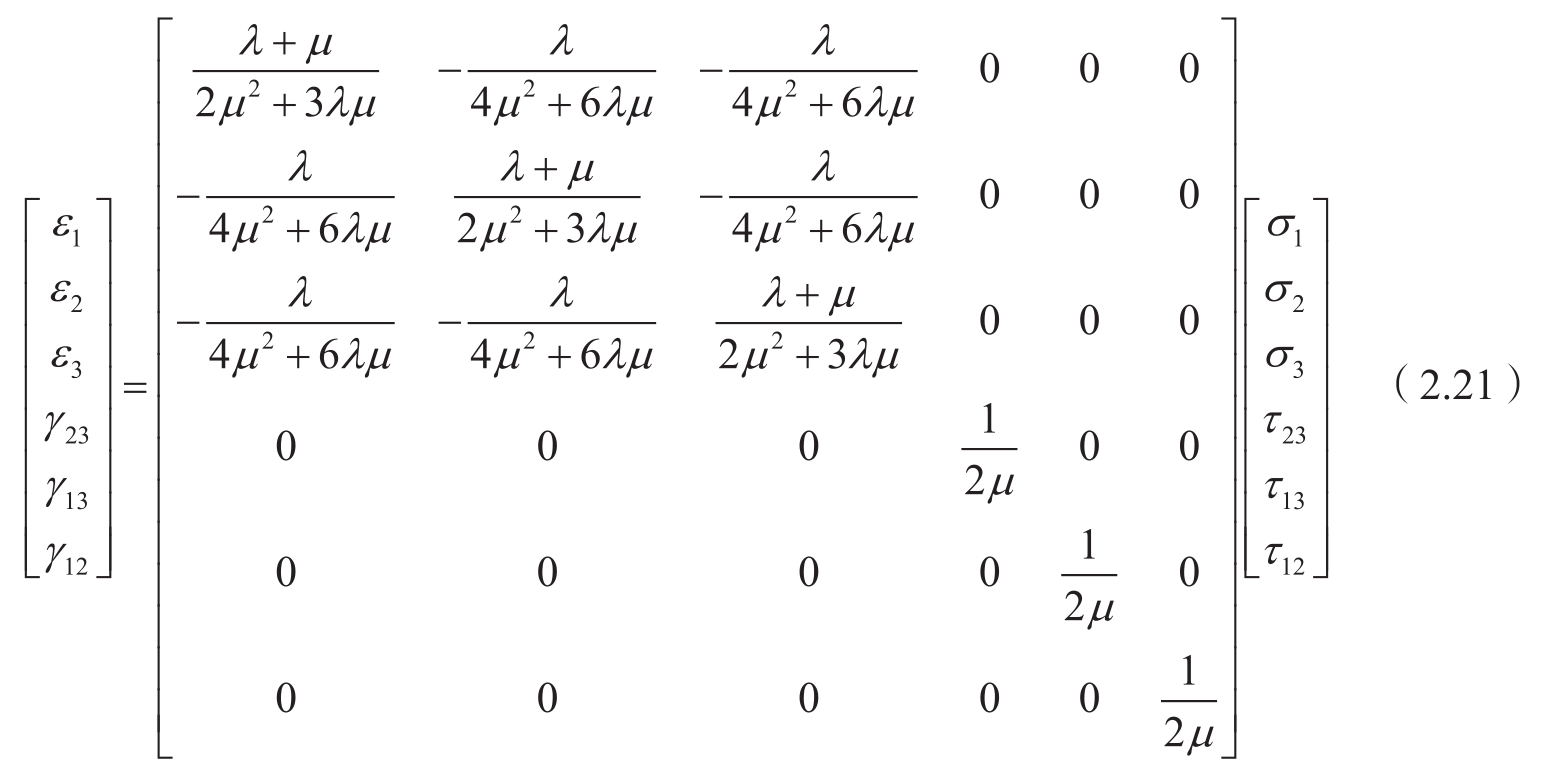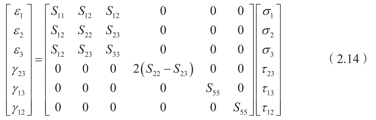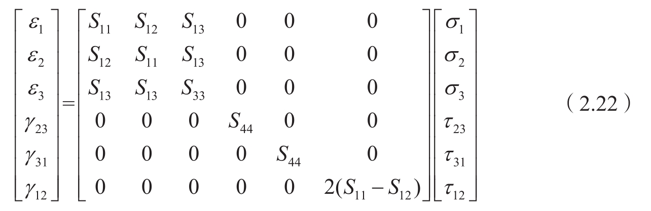 引入广义的弹性模量 E i 、泊松比 ν ij 和剪切模量 G ij 可得