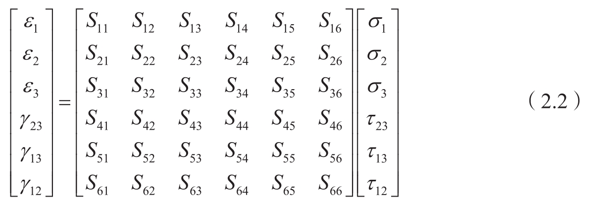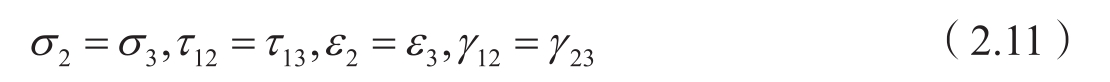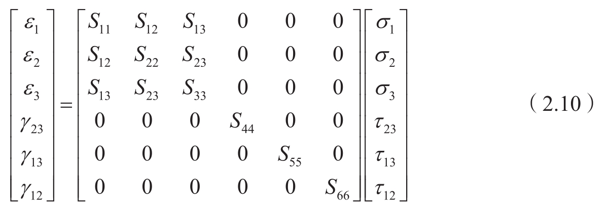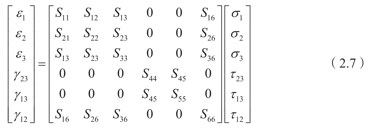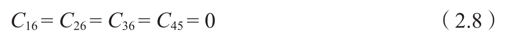 选取不同的两个弹性主轴,得到相同表达式。说明当存在两个弹性正交对称面时,一定有第三个弹性对称面。这里需要说明,正交各向异性材料是复合材料轻量化设计关键材料。