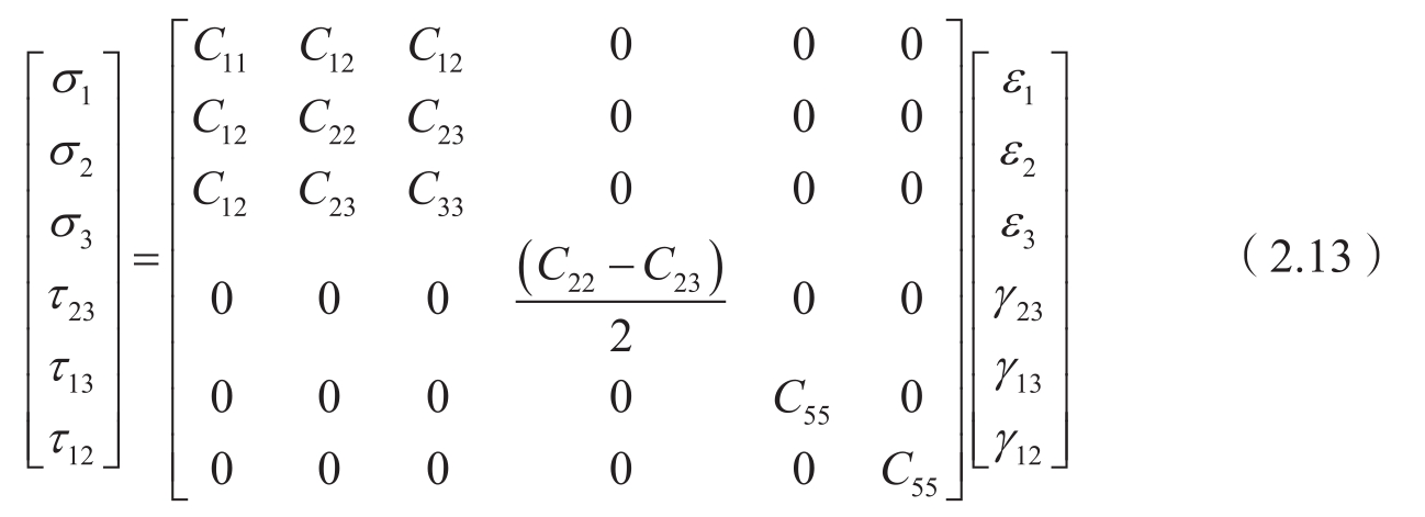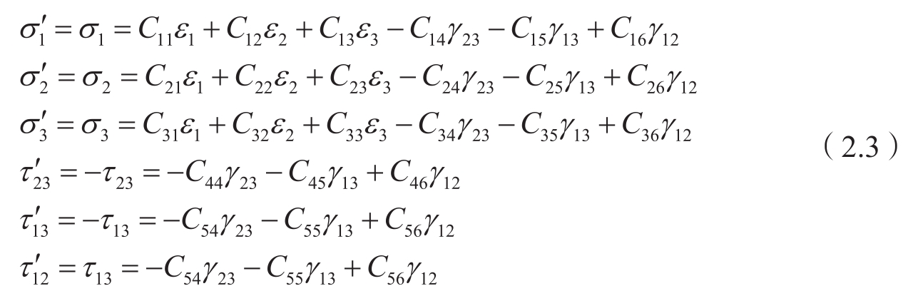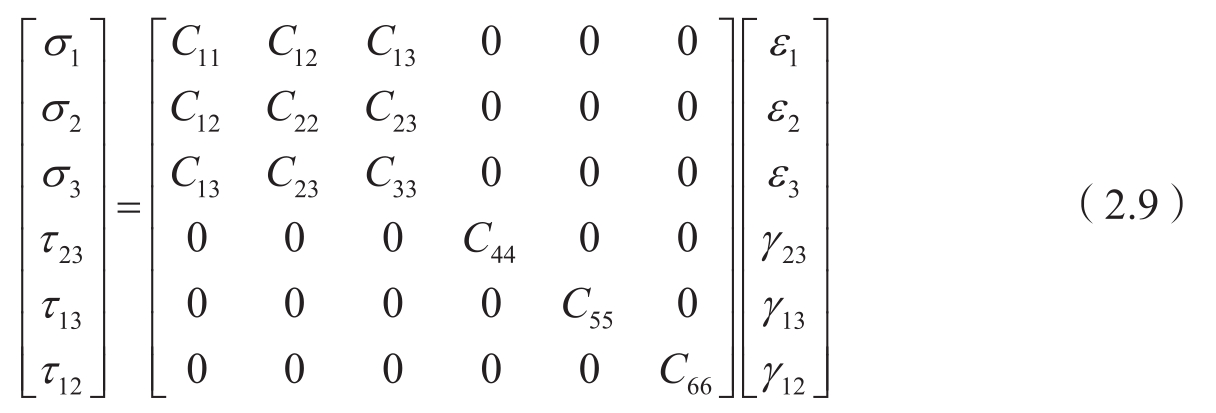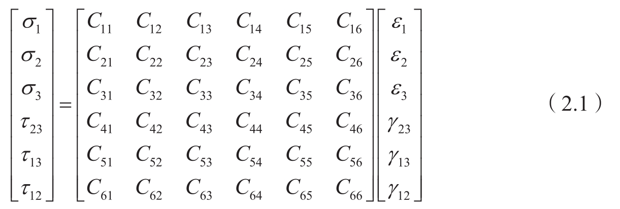 一般各向异性三维复合材料,如图2.5所示,本构关系如下