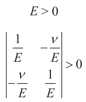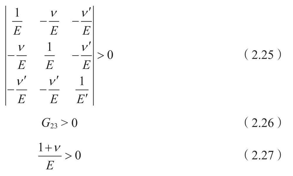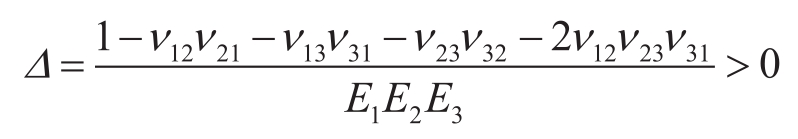 由于 E 1 , E 2 , E 3 >0,只需1 -ν 12 ν 21 -ν 13 ν 31 -ν 23 ν 32 -2 ν 12 ν 23 ν 31 > 0(*)