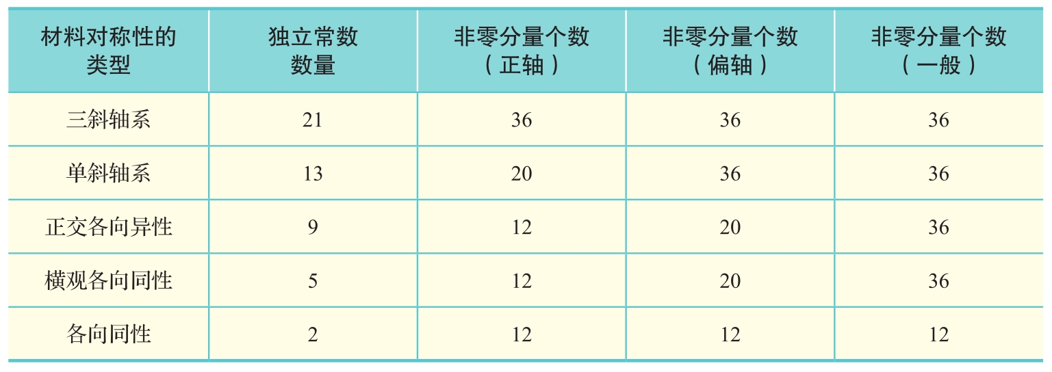 因而一般各向异性有21个独立的材料参数。[(36-6)/2+6=21]。