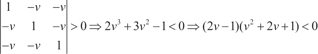 【例2.3】试证:各向同性体的泊松比的范围为-1< v <0.5。