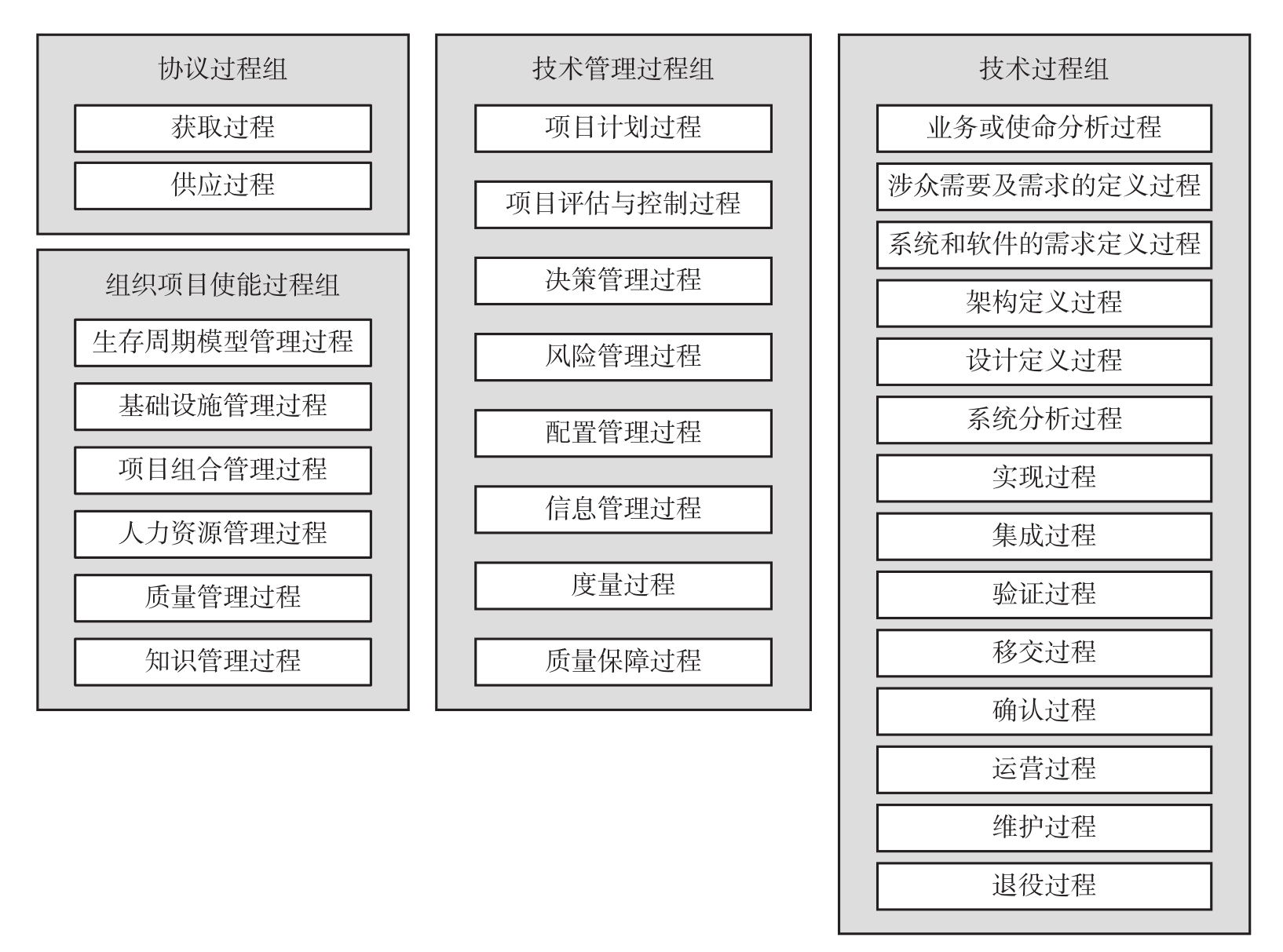 技术过程组关注贯穿软件生存周期的技术活动,用以定义系统的需求,将需求转换成一个有效的产品,使用这个产品,提供所需的服务,并保持这些服务直至它被淘汰。这些过程涵盖了软件或系统开发中的业务分析、需求定义、架构定义、设计定义、系统分析、实现、集成、验证、移交、确认、运维、退役等各个方面。