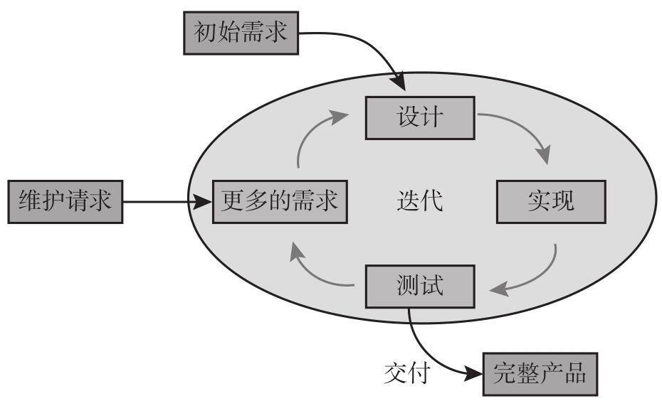 就像所有复杂系统一样,软件要经过一段时间的演化。业务和产品需求在软件开发过程中常常发生改变,想要一次迭代就开发出最终产品是不可能的;同时,紧迫的市场期限使得难以一下子完成一个完善的软件产品。因此,只要核心需求能够被很好地理解,我们就可以进行渐进式开发,其余需求可以在后续的迭代中进一步定义和实现。这种过程模型称为演化模型(evolutionary model),它能很好地适应随时间演化的产品的开发。