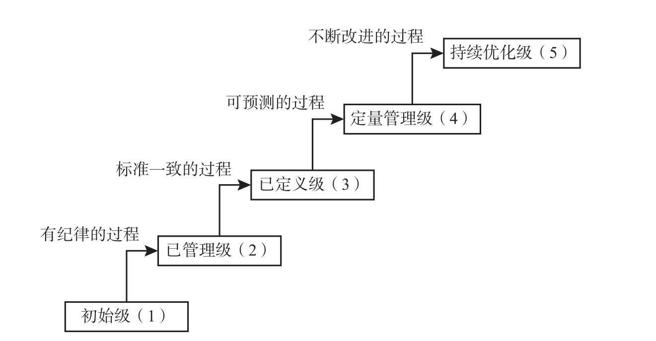 CMMI将软件组织的能力成熟度分为以下五个等级,如图2-11所示。