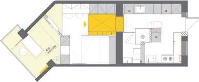 原户型的卫生间面积很小,经过设计之后,将淋浴房外移,占用一部分的过道空间从而整合成一组新的魔方舱,并将此魔方舱与卫生间对接。独立的淋浴房既是卫生间的外挂空间,又与其巧妙地组合在一起,形成功能完备的洗浴空间。