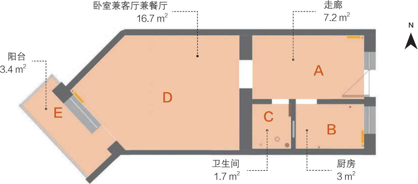 ②入户门外即公共走廊,隔音、隔热皆不理想,因此空间利用率低。