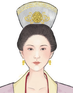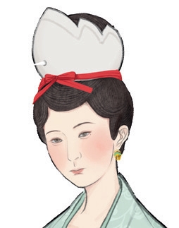 ① 用仿生花装饰的软冠 五代,佚名绘《浣月图》局部