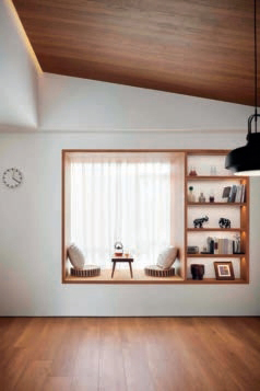 将光线最佳的窗台扩宽,打造成一个明亮舒适的休闲区,营造出一个令人放松的空间。斜顶处理是空间更富有层次感与设计感