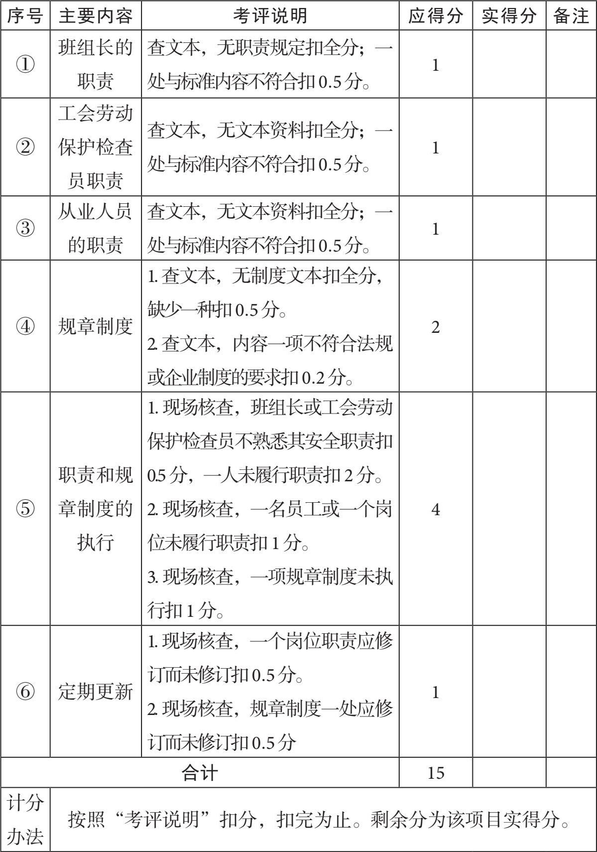 ⑥班组的安全生产职责及规章制度应定期评审,并将评审情况及时报告车间和上级单位,以便及时更新。