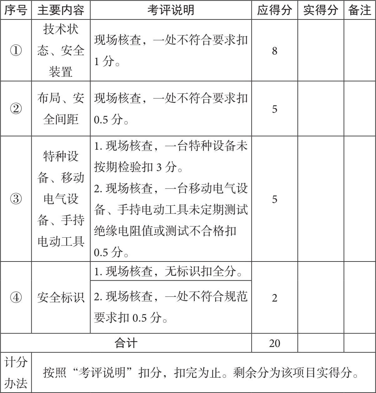 ①设备设施的技术状态良好,安全防护装置齐全、有效,应符合《机械制造企业安全生产标准化考核评级标准》中“设备设施安全技术条件的基本要求”的相关规定。