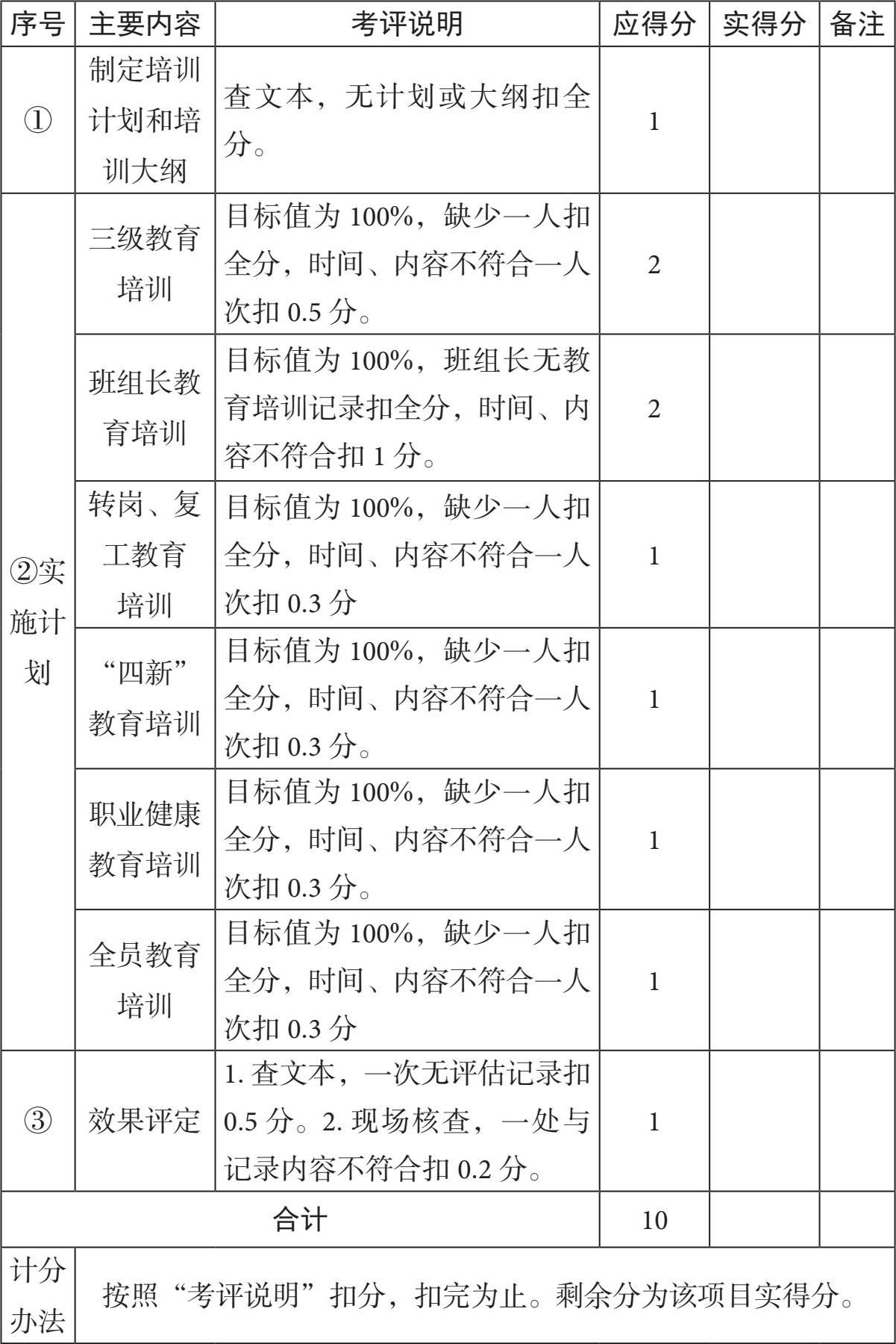 (2)基本达标班组:全年各种安全事故(含工伤事故、特种设备事故、火灾事故、交通事故等)小于等于年度目标值,且依据本《导则》检查评审综合得分大于或等于70分。