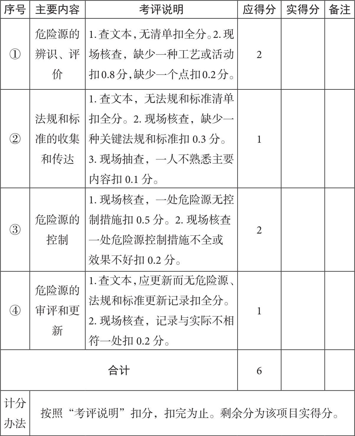 附录表 2-1 危险源的管理检查表相关条款(1)