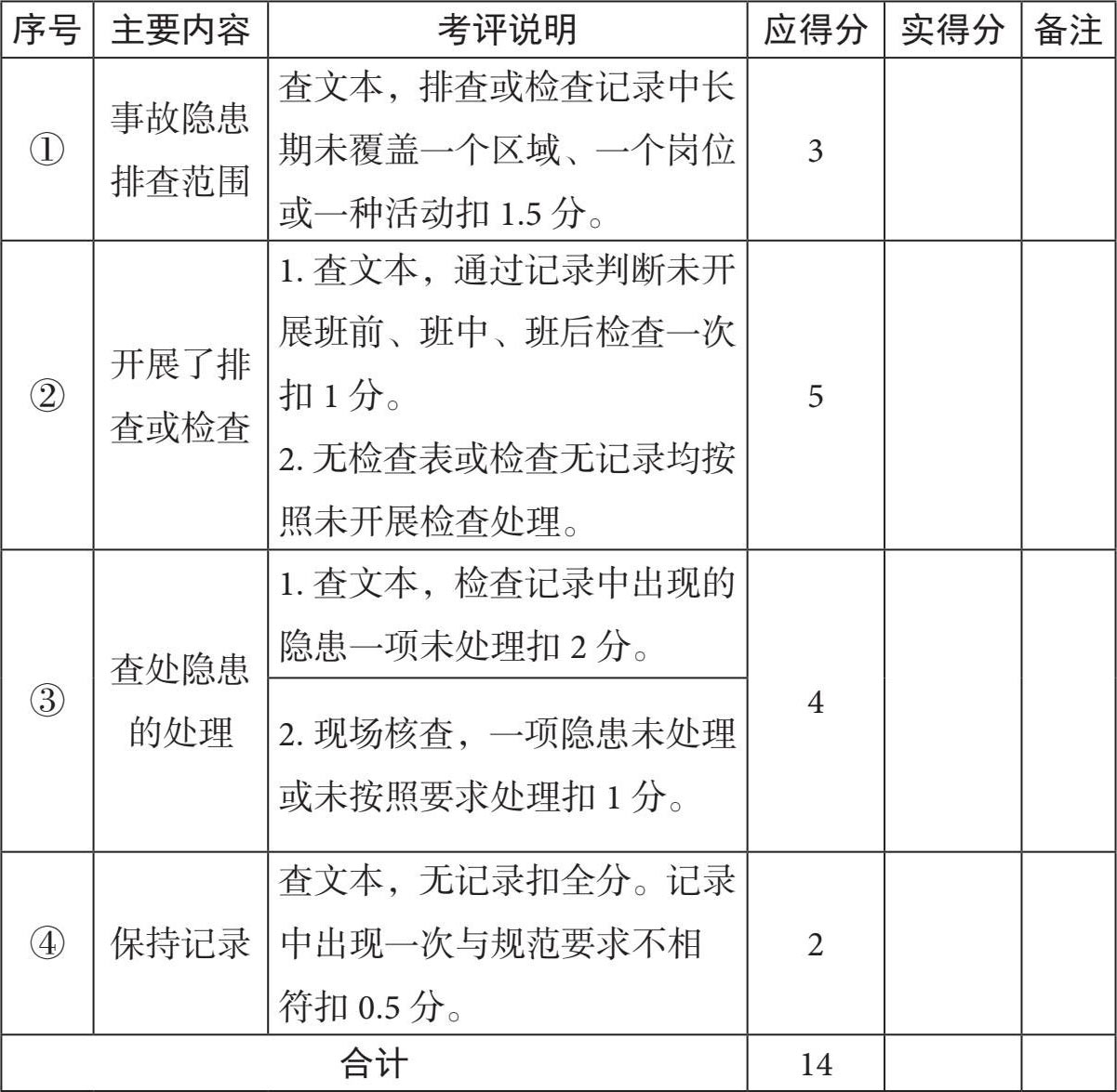 附录表 2-10 事故隐患排查和治理检查表(10)
