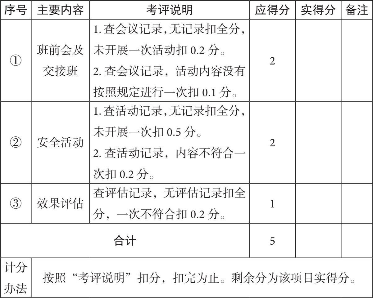 ②班组每月至少应开展两次安全活动,其主要内容为: