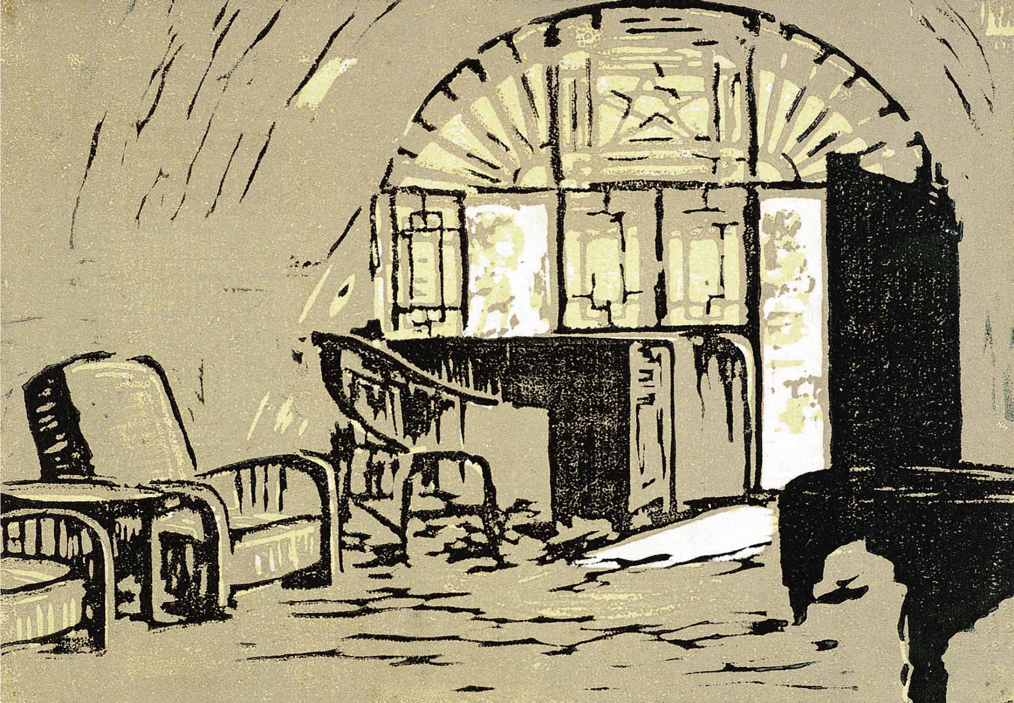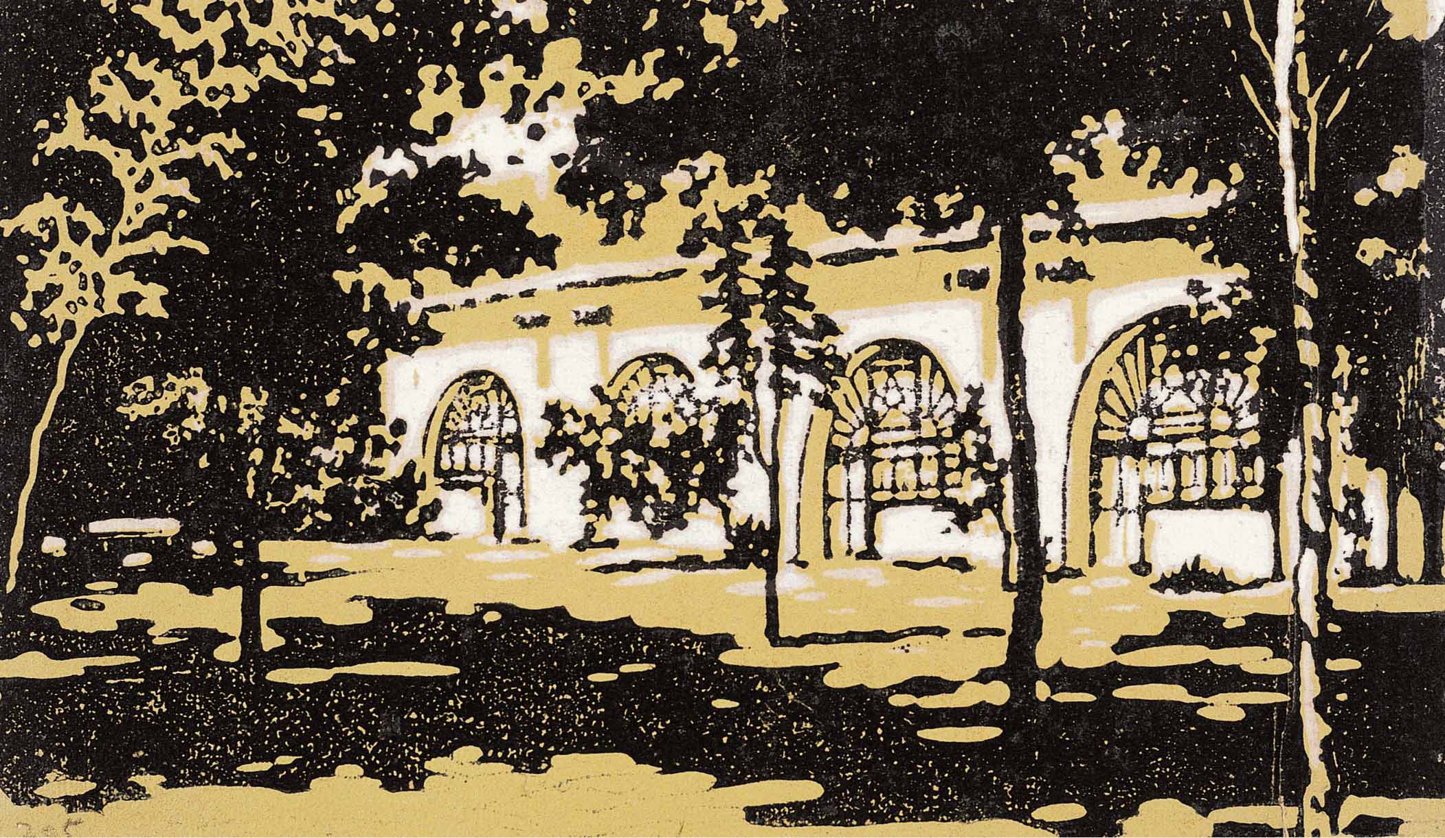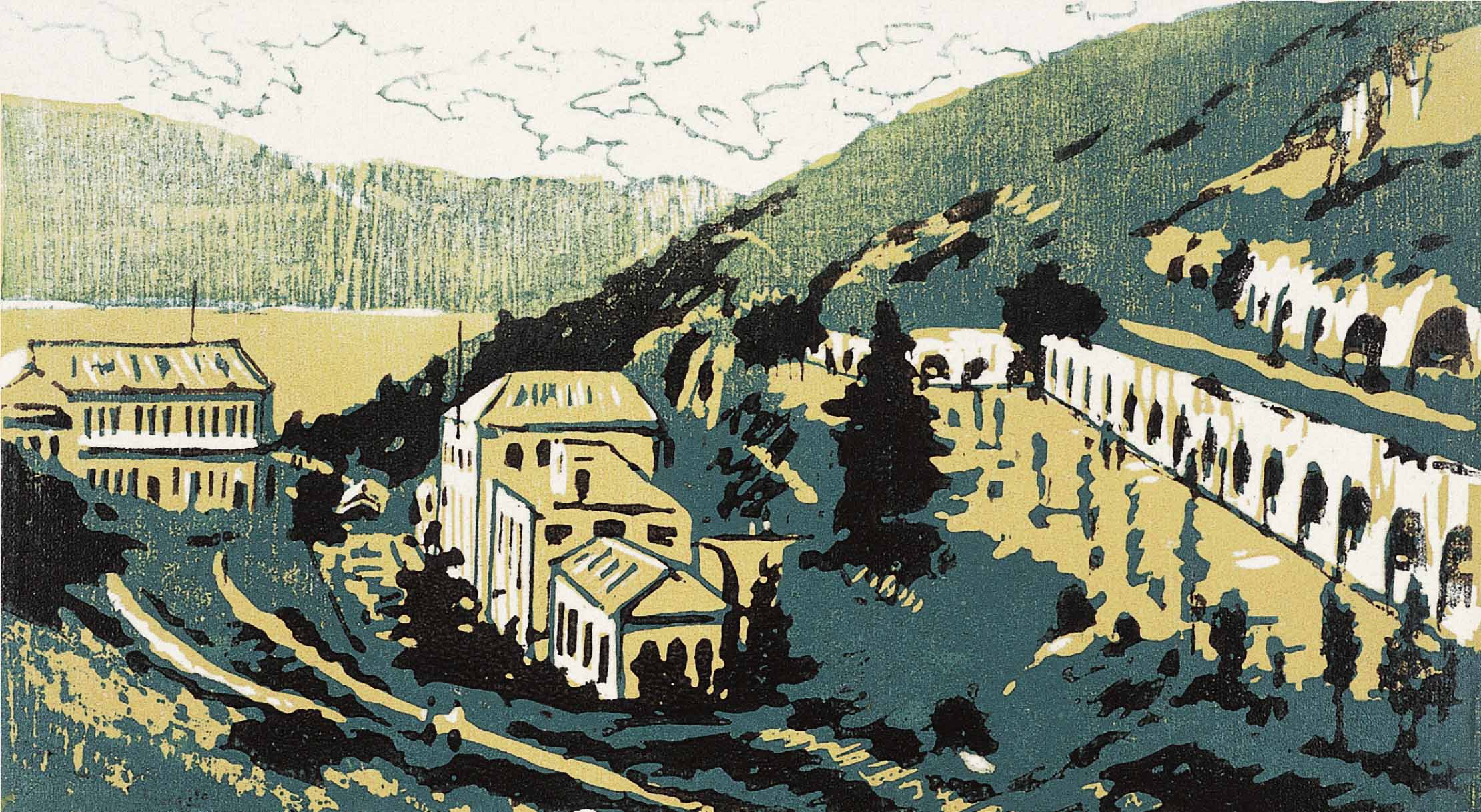 |延安组画:鲁艺旧址|1956年|木版油印套色|13.4cm×20cm|