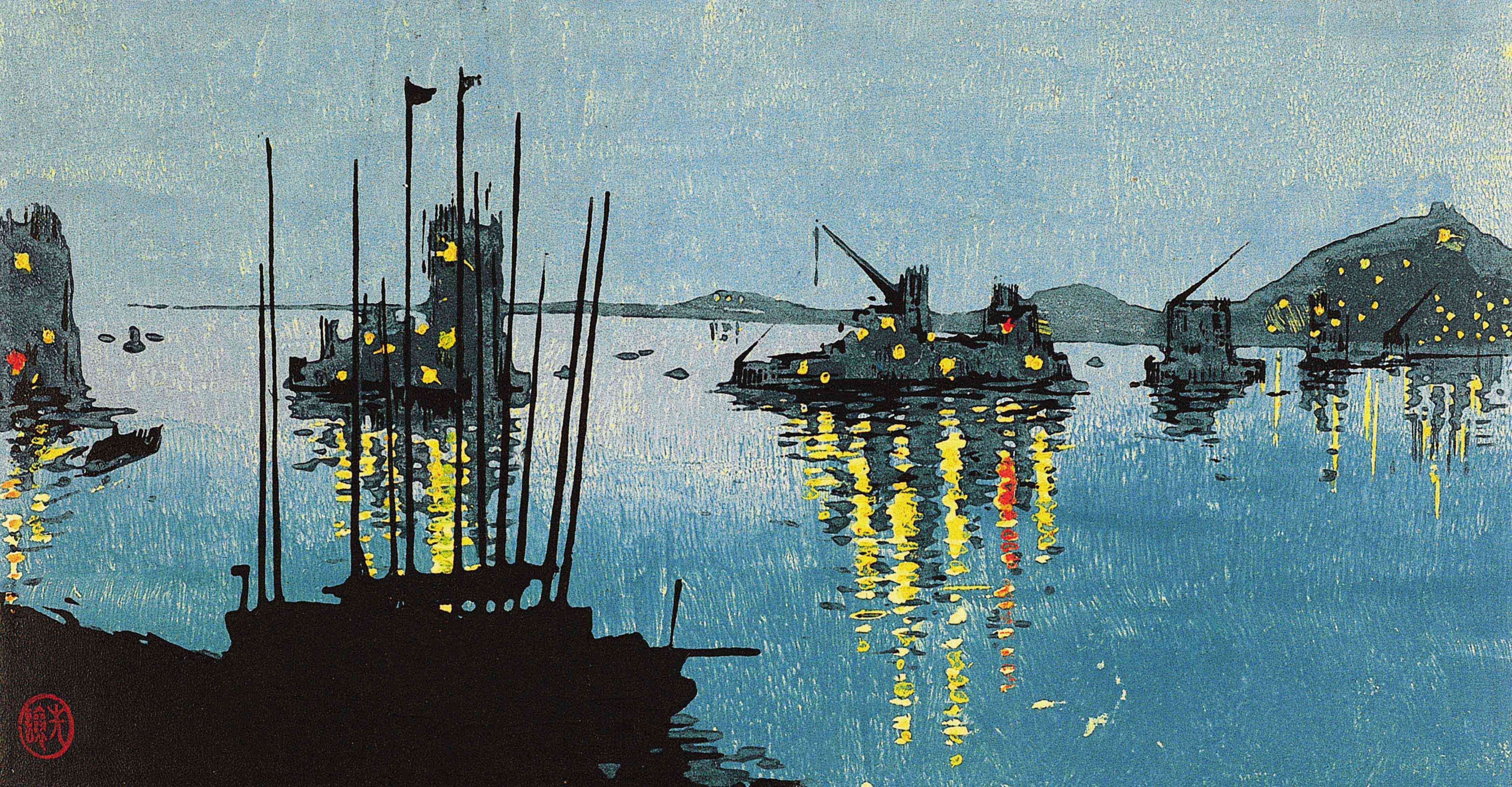 |武汉之夜|1955年|木版油印套色|11.8cm×25.4cm|