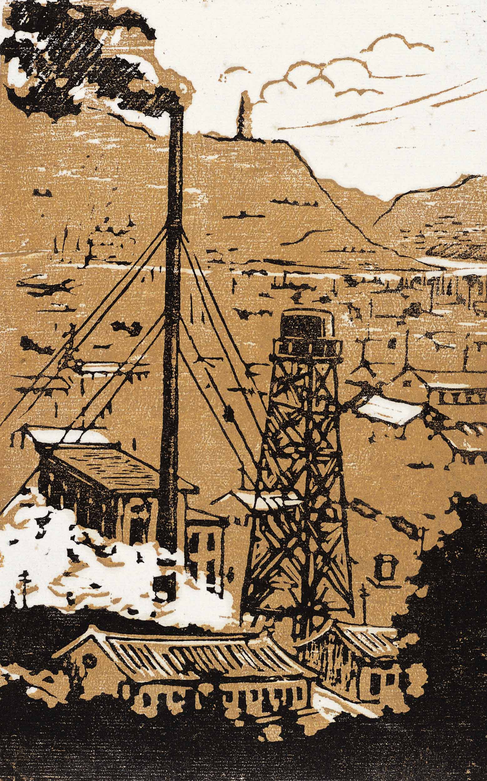 |延安组画:延安发电厂|1956年|木版油印套色|20cm×12.2cm|