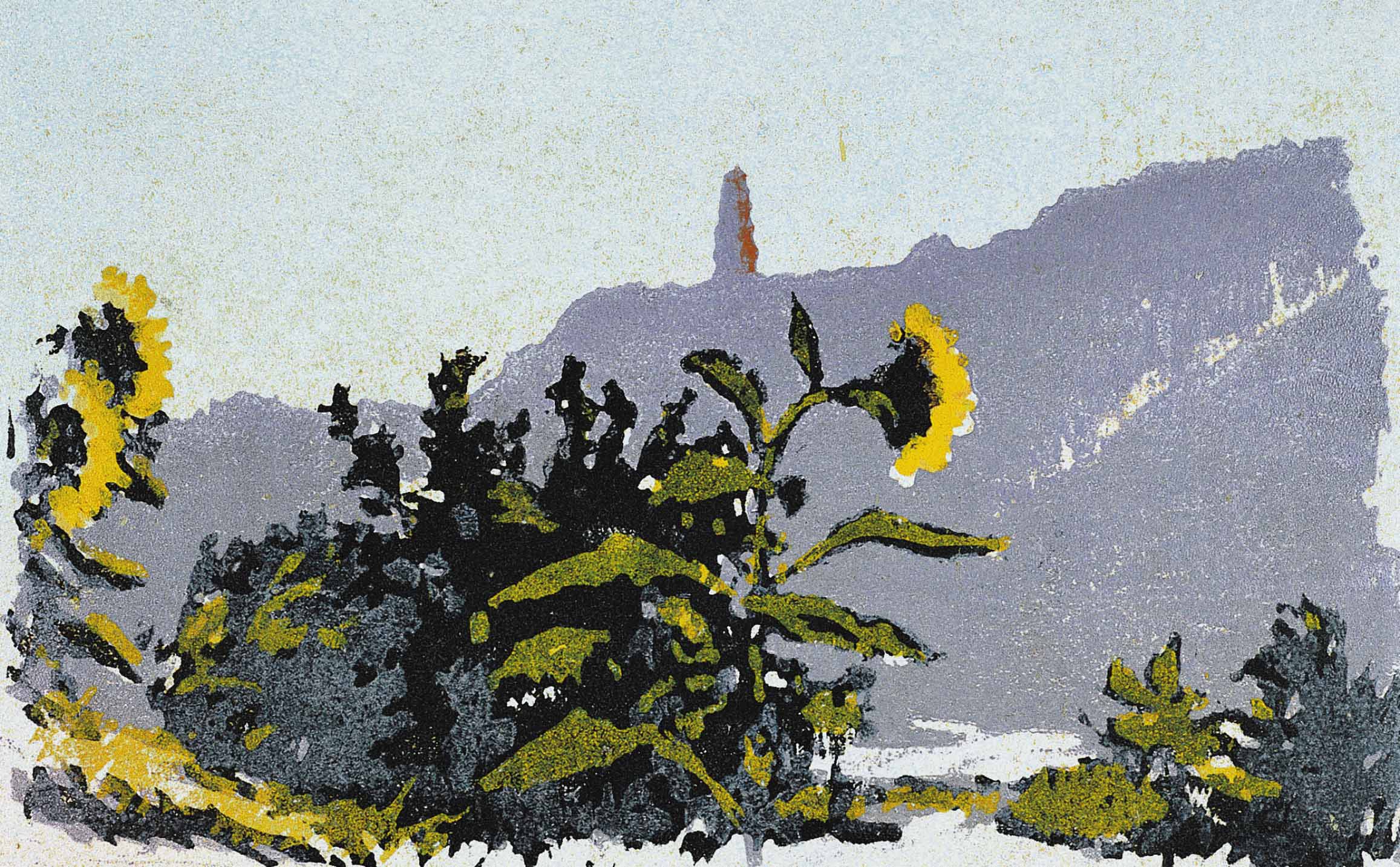 |延安组画:绿色的宝塔山|1956年|木版油印套色|14.5cm×29.2cm|