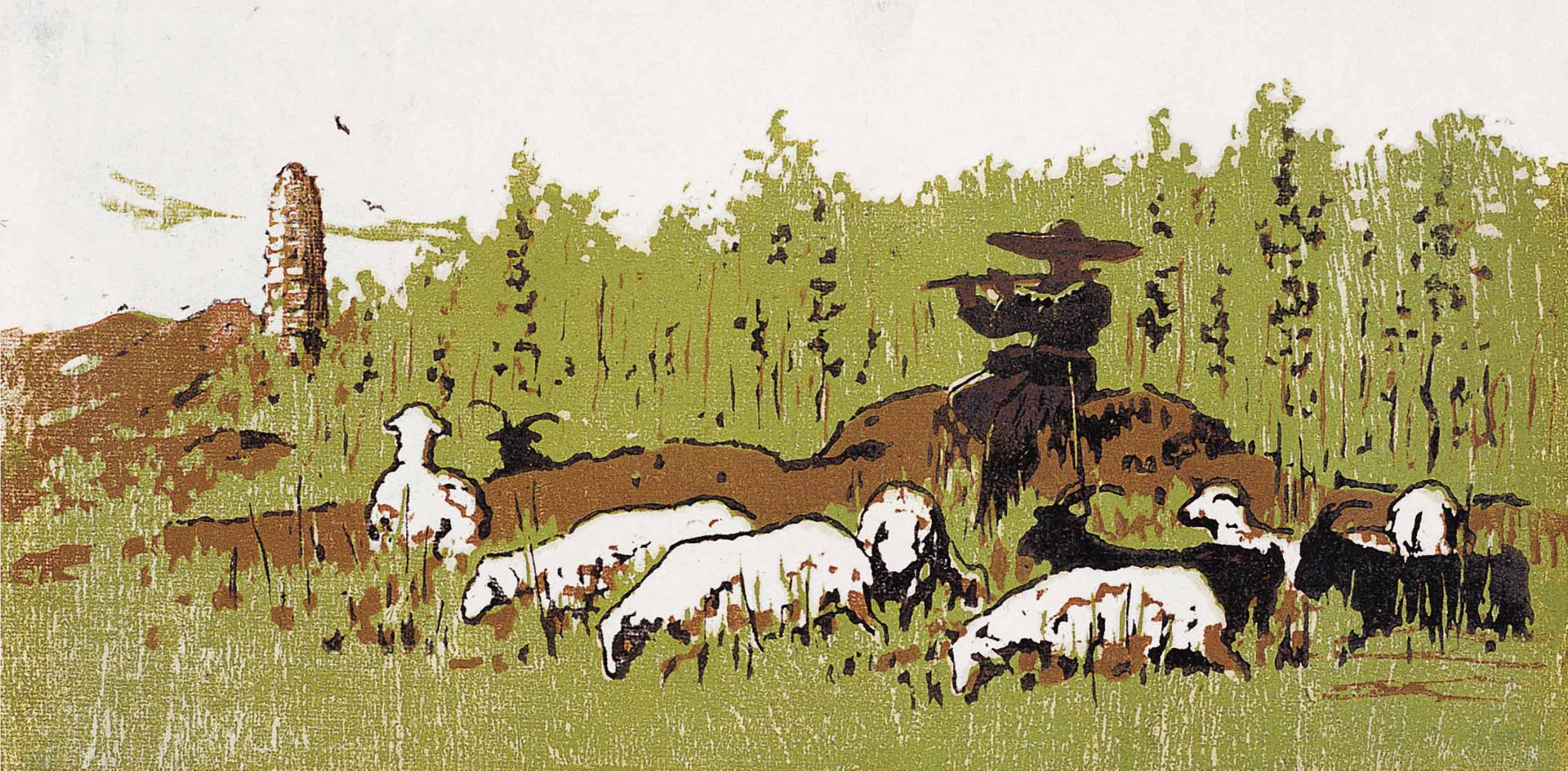 |延安组画:信天游|1957年|木版油印套色|19cm×16.5cm|