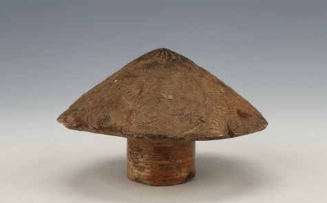 印花是两宋时期广西瓷器运用最多的装饰手法。根据考古发现不难判断,宋代广西地区流行蘑菇形的印模,俗称“花头”,印面刻有缠枝花卉、海水游鱼、海水摩羯、莲池鸳鸯、攀枝婴戏等题材的纹样,这明显取材于宋代耀州窑。但“花头”的基本特征为:印面圆凸,粗大把柄,中空,这在形制上显然与耀州窑的印花模具相去甚远(图7-10)。