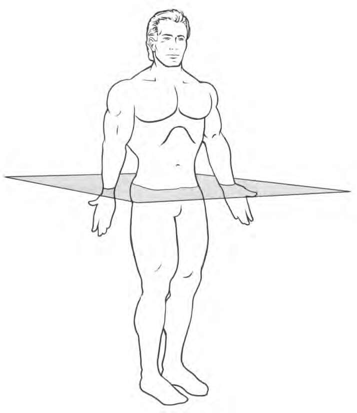 1.水平面将身体分为上下两部分,并且与地面平行。
