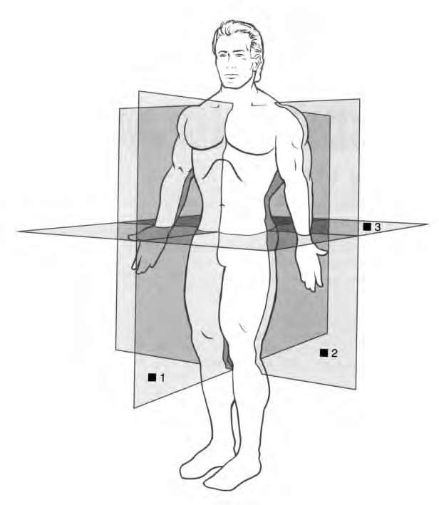 2.矢状面沿人体前后方向,将身体分为左右两部分。