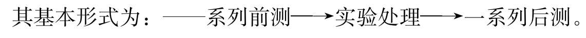 时间序列设计是准实验设计的典型例子。时间序列设计是指对一组非随机取样的被试实施实验处理,并在实验处理前后周期性地做一系列测量,然后分析前后测量是否具有连续性,从而推断实验处理的效果。