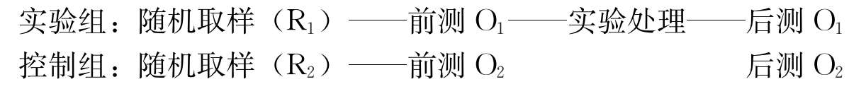 在实验处理之前增加了一次前测,通过前测可以获得所抽取样本的最初水平或心理特征,再与单组后测结果进行比较,以分析实验处理的效应。该研究设计的结论也缺乏可靠性,因为其中可能存在练习效应以及历史、成熟因素的影响。