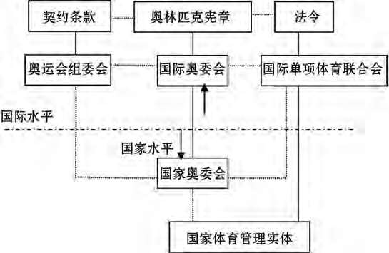 奥林匹克各组织间的关系主要依靠《奥林匹克宪章》规定的规章制度实施调控,在这种高层次的管理与调控方法之下,形成一个相对稳定的结构。奥林匹克品牌管理的组织分别是国际奥委会、奥运会组委会和国家奥委会,见图1。