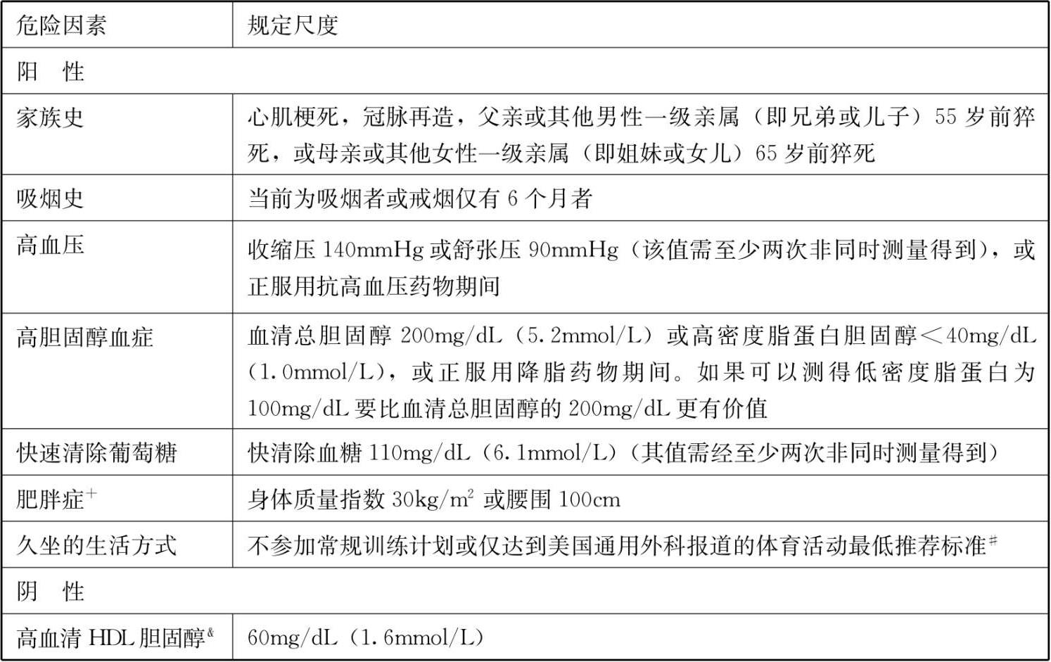 表1-3-3 应用于ACSM危险分级的冠状动脉疾病危险因素