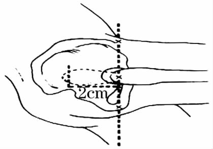 肘关节伸直时,正常者肱骨内、外上踝及尺骨鹰嘴突三骨点在一直线上(Hueter线)。当肘关节完全屈曲时,三个骨突形成一等腰三角形。如肘关节后脱位,则三点关系改变;但肱骨踝上骨折时,则三者关系不变。