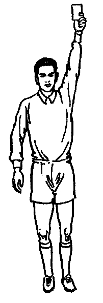 对队员罚令出场或警告时,分别出示红、黄牌。使用红、黄牌时,应一手持牌直臂上举,面向被处罚队员,有短暂时间的停顿、使场内外均能看清是对那名队员进行处分。