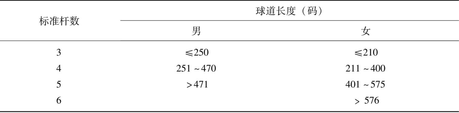 表 2-2-1 标准杆数的划分标准