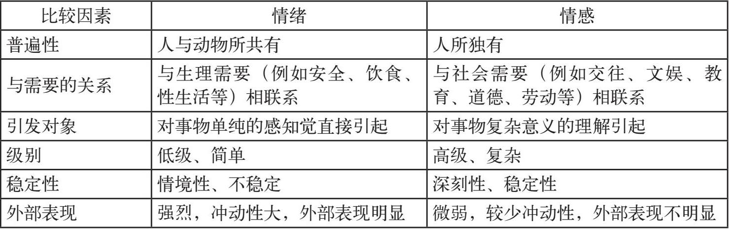 情绪情感是指人们对于客观事物是否符合自己的需要而产生的态度体验及其情感反应。情绪和情感是两种既有区别又有联系的主观体验。两者的区别在于: