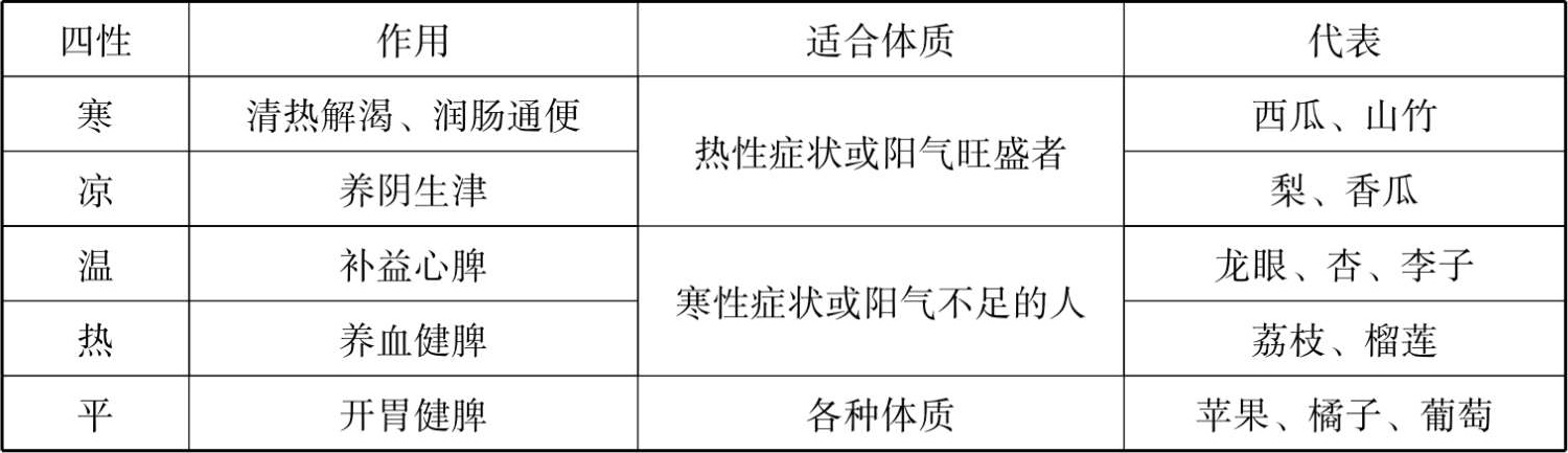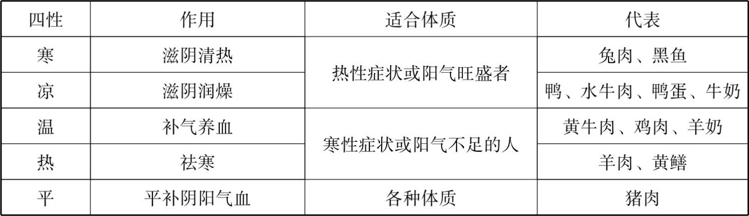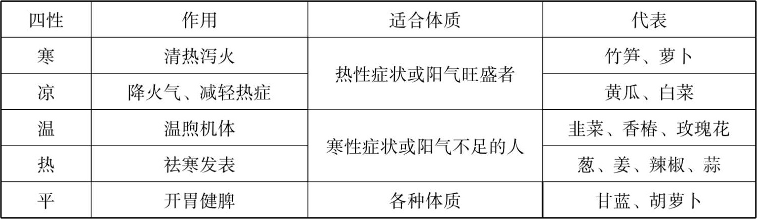 常用食物的性气、功能与适应证对应关系见表1-2~表1-5。