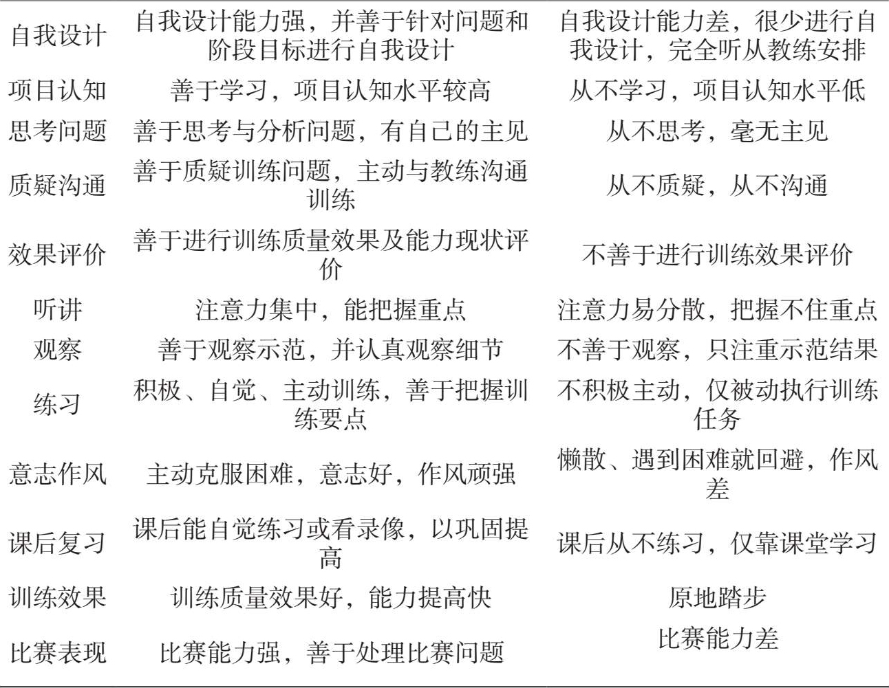表4-2 训练过程中运动员的主动性与被动性的具体体现
