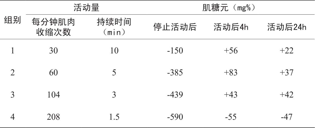 表6-2 不同负荷后动物肌糖原消耗与恢复