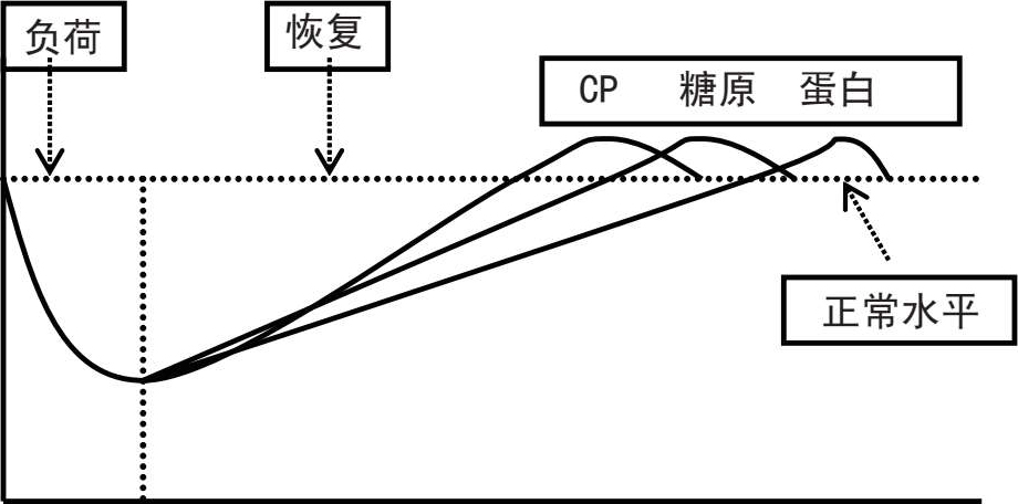 图6-1 机体承受原有负荷后的超量恢复现象示意图