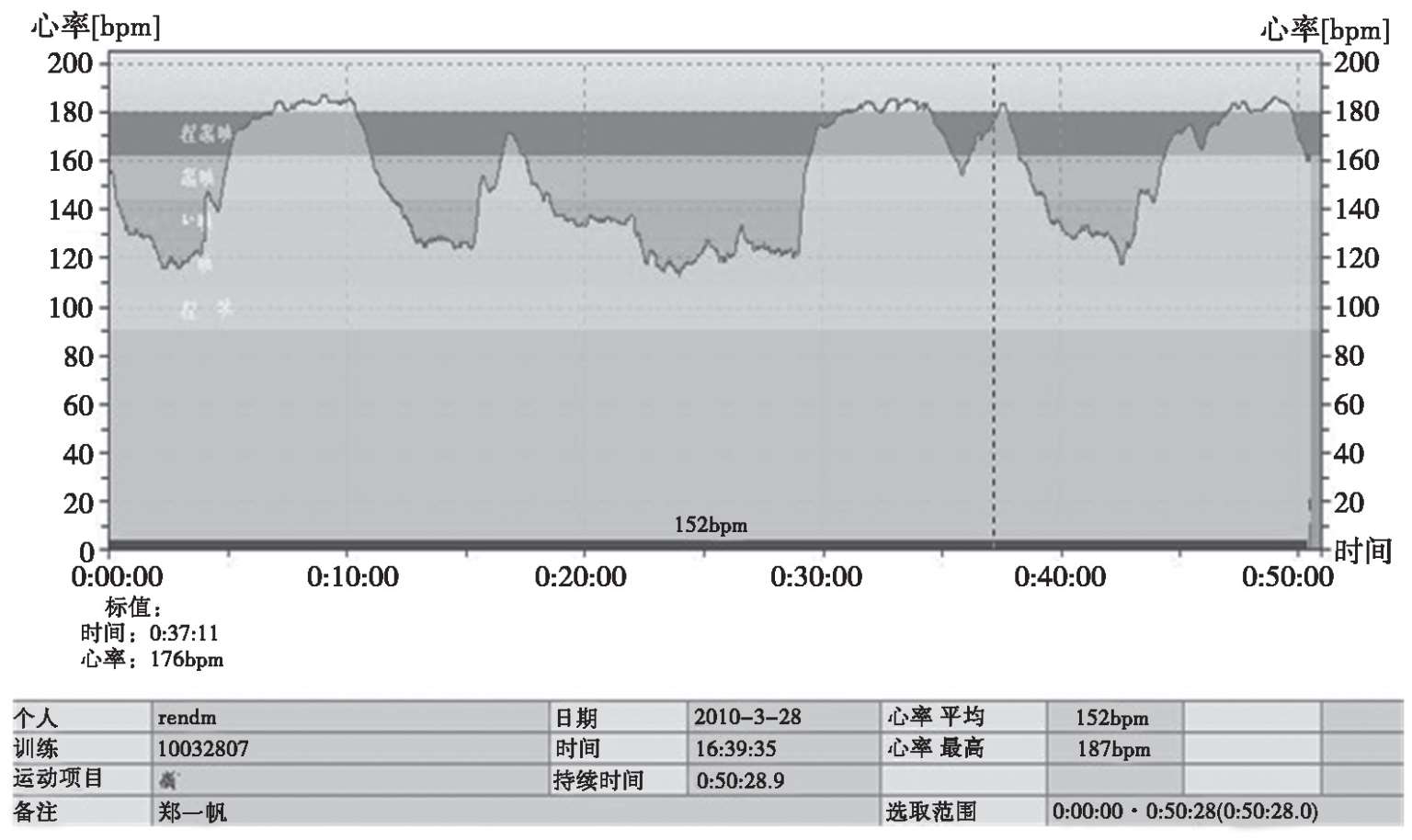 图2-1 郑某比赛中心率变化图