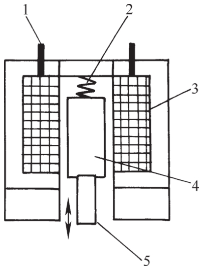 1—接线端子 2—弹簧 3—线圈 4—铁心 5—阀杆