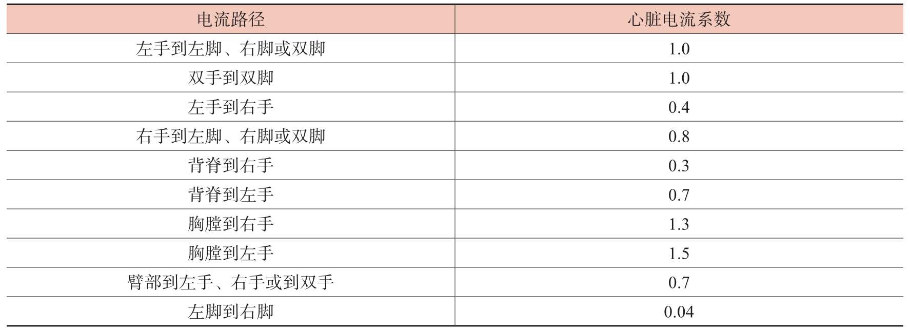 例如假设从手到手的电流为225mA,查表2-1得到从手到手的电流系数为0.4,则按照式(2-1)可得,该路径电流与从左手到脚的90mA电流具有对心脏处产生相同程度伤害的可能性。