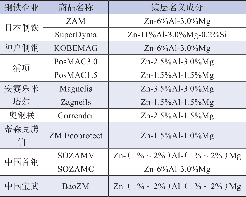 表1-36国内外主要的锌铝镁镀层钢板产品