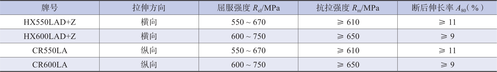国内外500MPa以下的热镀锌低合金高强钢已无法满足汽车行业车身轻量化、安全性、耐蚀性的迫切需求,600MPa级、700MPa级热镀锌低合金亟待开发。目前,GB/T 2518—2019《连续热镀锌和锌合金镀层钢板及钢带》中关于冷基镀锌低合金高强钢最高强度牌号为HX500LAD+Z,因此需补充HX550LAD+Z、HX600LAD+Z等更高等级的牌号。