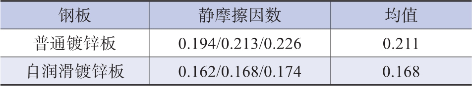 相比普通镀锌板,自润滑镀锌板摩擦因数降低20.38%。普通镀锌板与自润滑镀锌板静摩擦因数对比见表1-37。