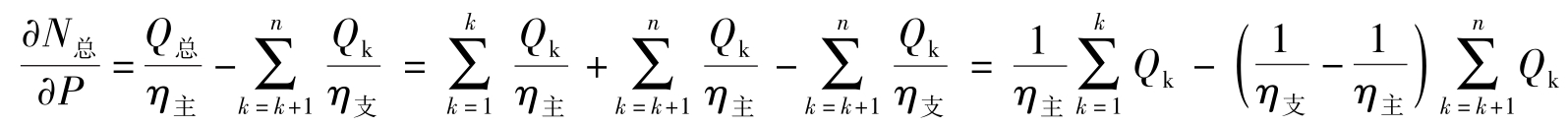 (2)支路风机效率小于主风机效率时 一般情况下,支路风机效率要小于主风机效率,即 η 支 < η 主 。因为一般支路风机的安装空间受限,许多产品为了控制结构尺寸,将箱体结构制作较小,致使支路风机效率较主风机低。